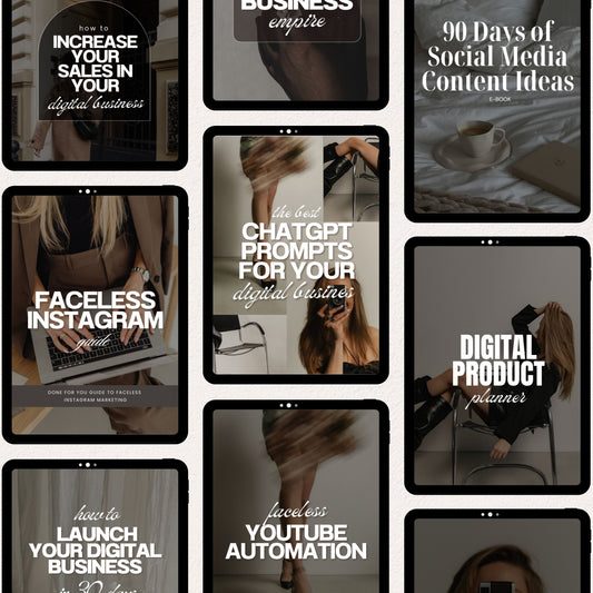 Elevate your brand with our suite of digital products tailored for the modern business owner. From social media templates to daily planning guides, our tools are designed to streamline your online image and organize your entrepreneurial life.